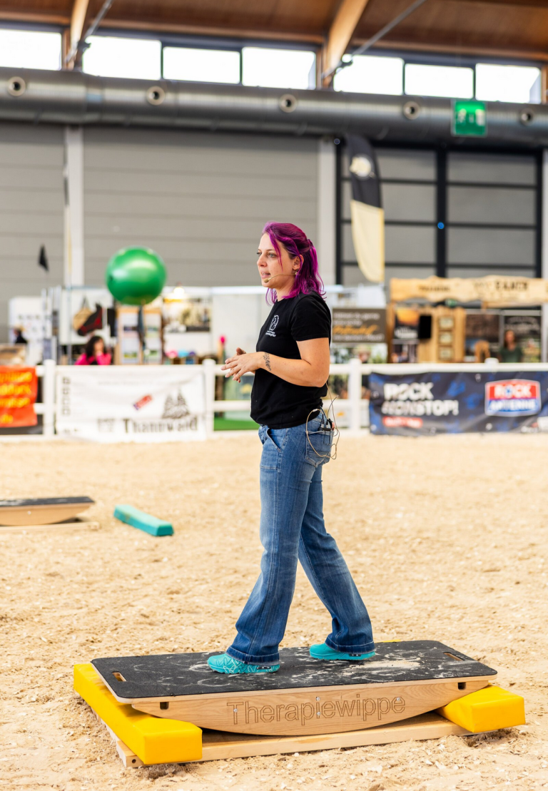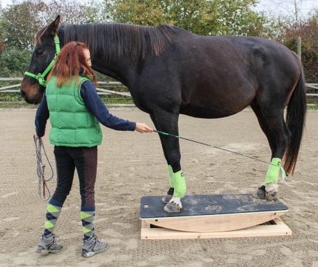 Dein Pferd lernt auf der Wippe mit sanften Wippbewegungen unwillkürlich wieder mehr die Hinterhand zu benutzen und im laufe der Zeit nimmt dein Pferd immer mehr Last auf die Hinterhand auf.