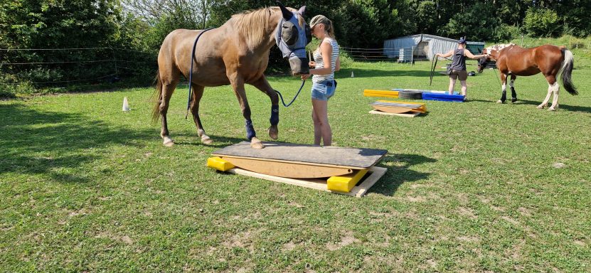 Das Wippen kann Pferden mit Sehnenproblemen helfen, da es die tiefe Muskulatur stärkt, die Durchblutung fördert und die Koordination verbessert, was indirekt die Sehnen entlastet. Durch die instabile Unterlage wird die Sehne gestärkt und der Fesselträger trainiert
